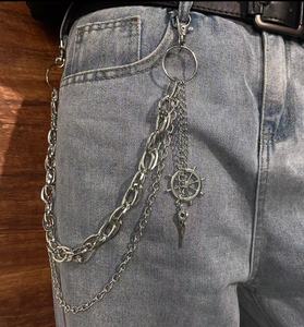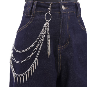 复古嘻哈风金属多层裤链美式朋克暗黑铆钉潮酷风腰饰配牛仔裤裙子