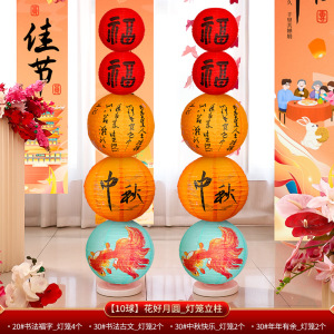 中秋节氛围场景布置挂布条幅商场店铺主题活动拍照打卡灯笼挂饰