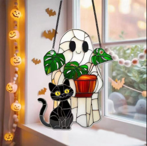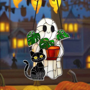 跨境新品万圣节猫咪鬼魂太阳捕手小幽灵2D平面亚克力节日氛围挂饰