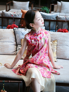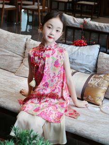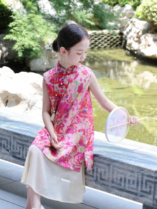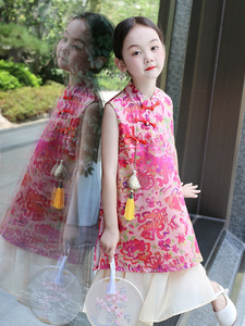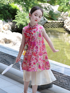 红色女童旗袍裙中国风改良古筝儿童汉服连衣裙夏季新中式唐装裙子