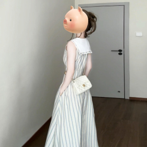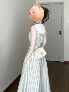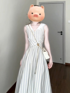2025法式气质海军领条纹无袖连衣裙子女夏季小个子感绝美掐腰长裙