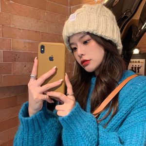 冬季日韩版保暖帽女麻花百搭户外套头帽显脸小学生秋冬潮流针织帽