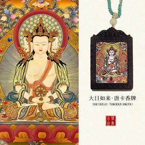 藏式手绘描金唐卡香牌吊坠持久留香十二生肖本命佛大日如来挂件
