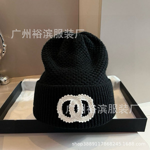 小香风冬季香奶奶羊毛针织帽女保暖加厚新款毛线帽女潮时尚护耳帽