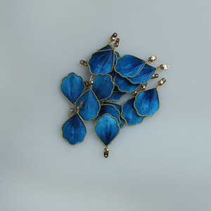 国风非遗蚕丝绒花花瓣半成品手工蓝色系掐丝叶片点缀diy配件批发