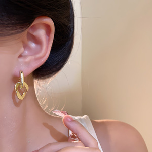 小众设计双扣耳环女2025新款金色几何气质耳钉高级感独特绝美耳饰