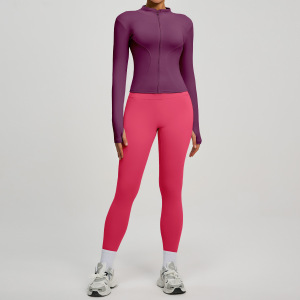 跨境高弹运动套装修身高腰提臀跑步两件套瑜伽服