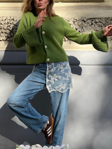 欧美纯欲风圆领喇叭袖针织外套女|修身显瘦亲肤舒适简约时尚百搭