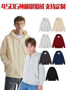 450G重磅纯棉银狐绒拉链卫衣外套加绒加厚亲子百搭印logo欧码跨境