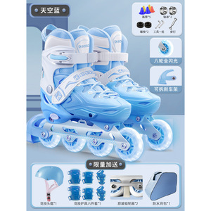 天空蓝【升级芭扣款】头盔护具+护臀垫+背包+锁轮器+大