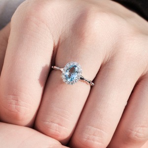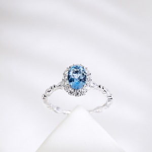 天然蓝色托帕石戒指女小众设计海蓝宝指环精致气质ins开口食指戒