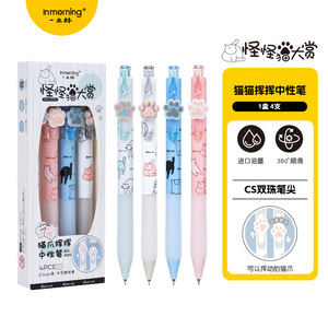 一木林970 猫猫怪大赏中性笔可爱小猫顺滑cs双珠按动刷题签字黑笔