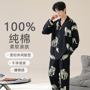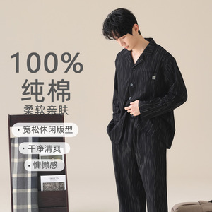 5A抗菌青少年长袖睡衣男士纯棉春秋款2025新款男款男生大码可外穿