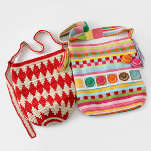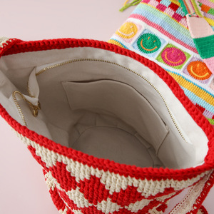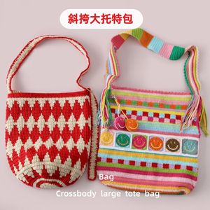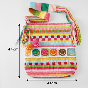 波浪纹编织包笑脸彩色钩织包斜挎大托特包大号菜篮子斜挎包大背包