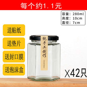 六棱玻璃罐密封食品级小带盖空一斤柠檬膏蜂蜜辣椒果酱瓶批发