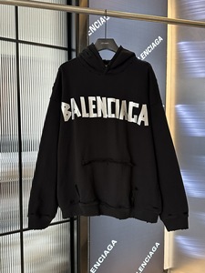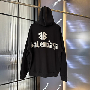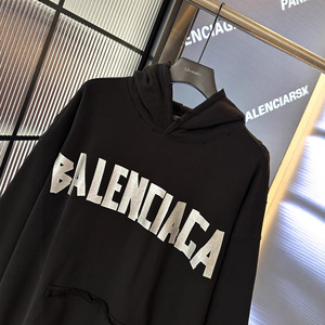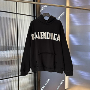 欧美跨境巴黎b家秋冬新款 胶布字母破洞连帽卫衣男女款一件发