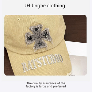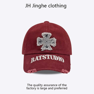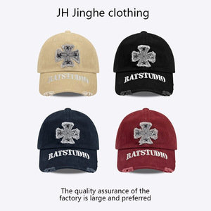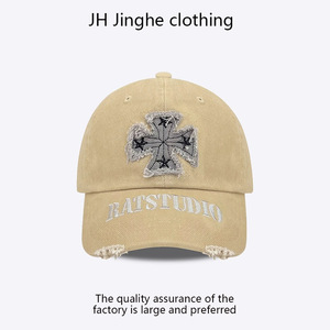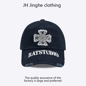 新款潮牌十字破洞棒球帽子女时尚街头休闲字母刺绣鸭舌帽遮阳帽男