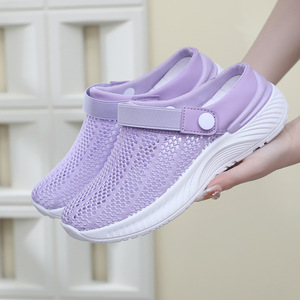 夏季女款透气镂空网面鞋一脚蹬懒人半拖洞洞鞋时尚休闲沙滩女凉鞋