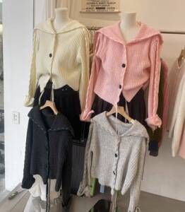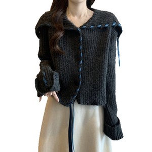 2025年新款氛围感设计飘带翻领针织衫海军领软糯气质慵懒毛衣外套