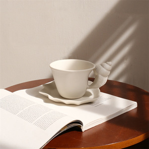 海螺杯批发创意款哑光陶瓷咖啡杯碟复古浮雕贝壳马克情侣对杯礼物