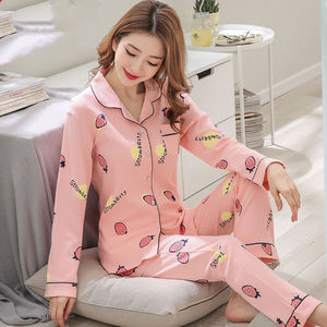 5A抗菌纯棉睡衣女士款春秋季长袖休闲简约韩版套装家居服可外穿轻