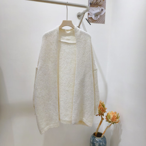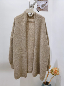 韩版v领中长款纯色针织开衫女秋冬温柔慵懒亮片毛衣外套百搭上衣