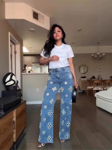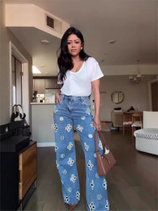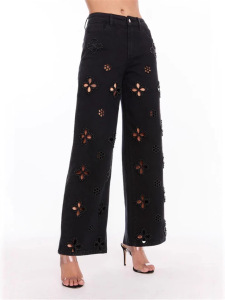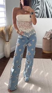牛仔裤2025春夏新款欧货重工刺绣珍珠镂空时尚个性弹力直筒阔脚裤