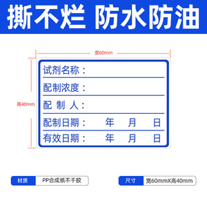 试剂标签贴纸实验室化学试剂分类不干胶可手写标准样品检测配制纸
