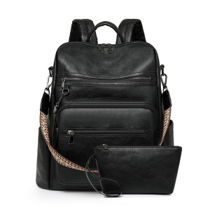 女士双肩包PU商务包新款跨境大容量电脑背包时尚通勤包多用背包批
