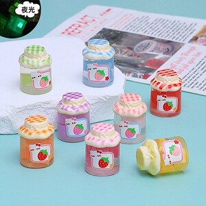 夜光小猫草莓果酱瓶食玩卡通diy饰品配件奶油胶树脂小配件材料包