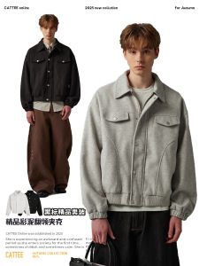CATTEE美式复古cleanfit飞行员夹克男女宽松机车服纯色短款外套潮