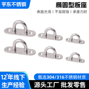 跨境304不锈钢吊环挂钩 椭圆型板座固定扣遮阳帆五金配件承重吊钩