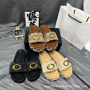 法式风外穿高级感厚底增高金属扣女鞋2025百搭潮流真皮帆布面凉拖