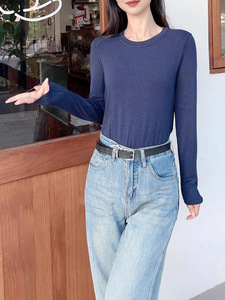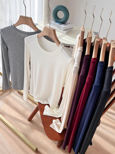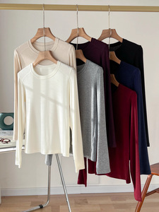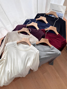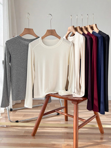实力工厂轻软瘦瘦T莱赛尔天丝醋酸羊毛圆领打底衫女正肩长袖T恤