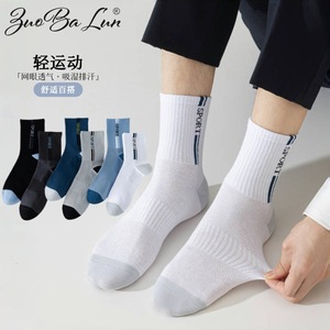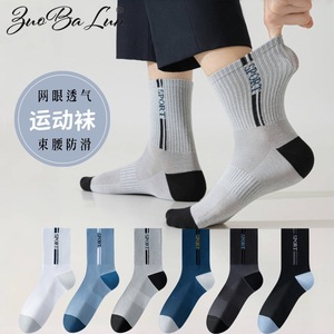袜子男春秋中筒袜夏季棉袜网眼束腰防滑运动袜男士商务袜透气吸汗