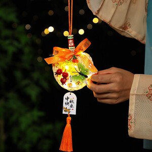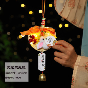 中秋节发光挂饰蒲扇挂件纯手工古风中秋挂饰创意门挂车挂中秋伴手