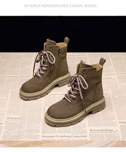 厚底镂空大黄靴女2025夏季新款内增高真皮透气打孔马丁靴系带凉靴