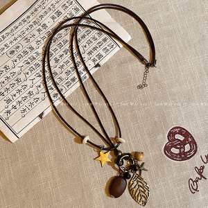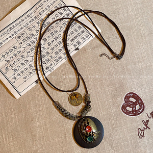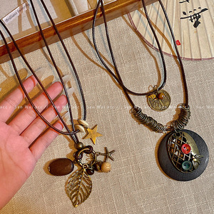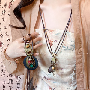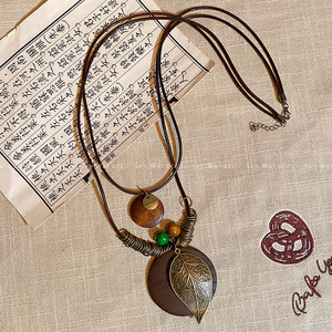 民族风复古圆盘叶子吊坠项链女百搭小众多层长款锁骨链爆款配饰品