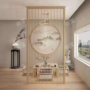客厅办公室铝合金屏风隔断酒店餐厅简约镂空入户玄关山水屏风