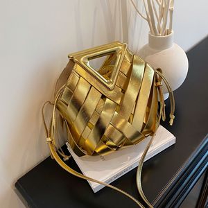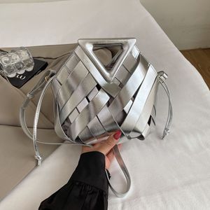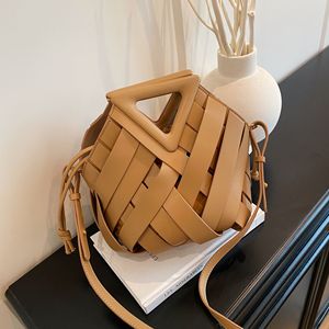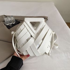 跨境轻奢潮流手提包编织菜篮子水桶包镂空设计感女时尚单肩斜挎包