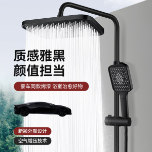 【黑色套装1】方形增压超大顶喷+增压4档花洒