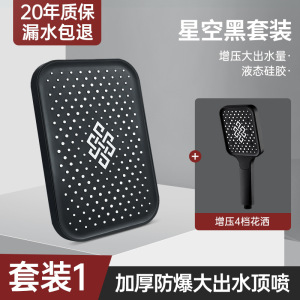 【银黑套装1】方形增压超大顶喷+增压4档花洒