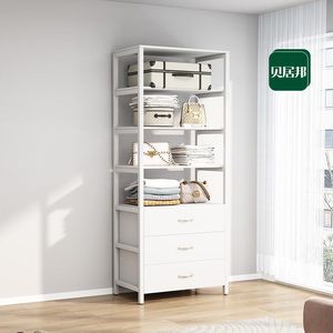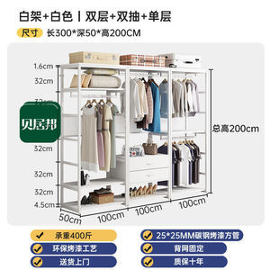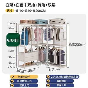 金屬家具框架开放式衣柜步入式衣帽间架子钢木结构铁艺挂衣架落地