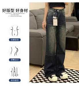 复古微喇牛仔裤女秋冬新款胖妹妹mm梨形身材高腰宽松显瘦阔腿长裤
