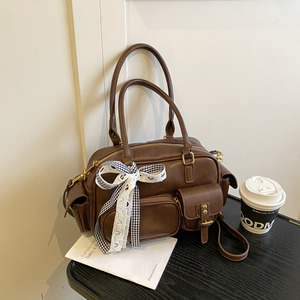 高级复古美拉德腋下包跨境韩系大容量撞色通勤单肩包潮流波士顿包