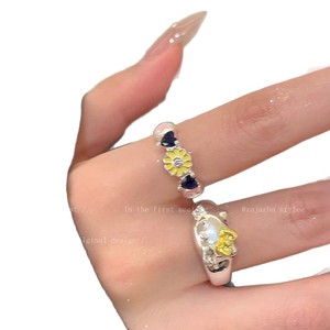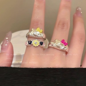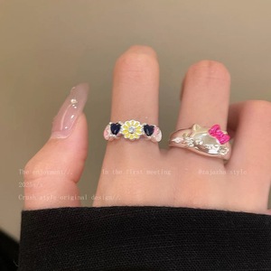 粉色kt小雏菊开口戒指女韩系甜美可爱小众设计食指戒卡通童趣指环