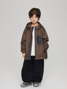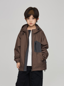 2025秋季童装新款儿童时尚拼色防水冲锋衣男童夹克中大童连帽外套