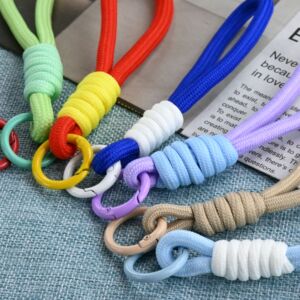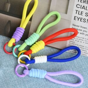 手机挂绳短款拼色打结编织挂绳毛绒钥匙扣编织挂绳防 丢吊绳