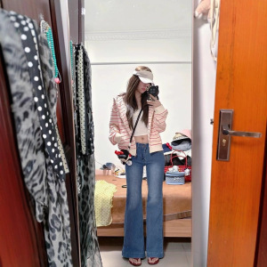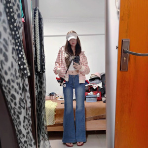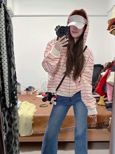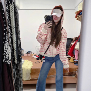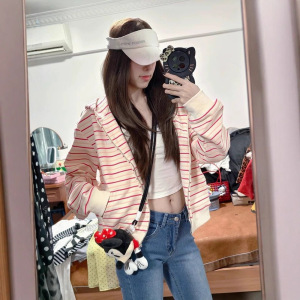 2025秋季新款学院风休闲百搭慵懒风条纹连帽卫衣外套
