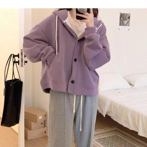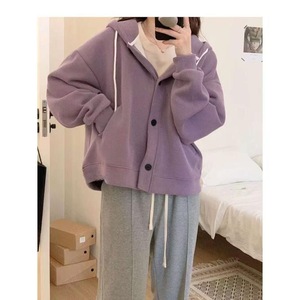 日系慵懒风高级感连帽卫衣女秋冬大码宽松300斤小个子短款外套潮